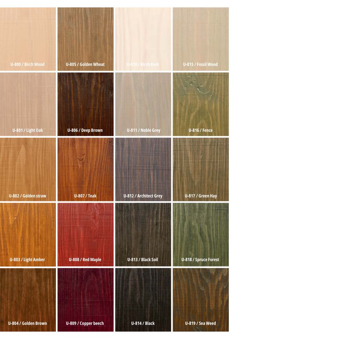 Flügger Exterior 03 Wood Tex Transparant is te mengen in alle transparante Flügger Exterior Transparante Kleuren en de Sikkens Cetol kleuren.
